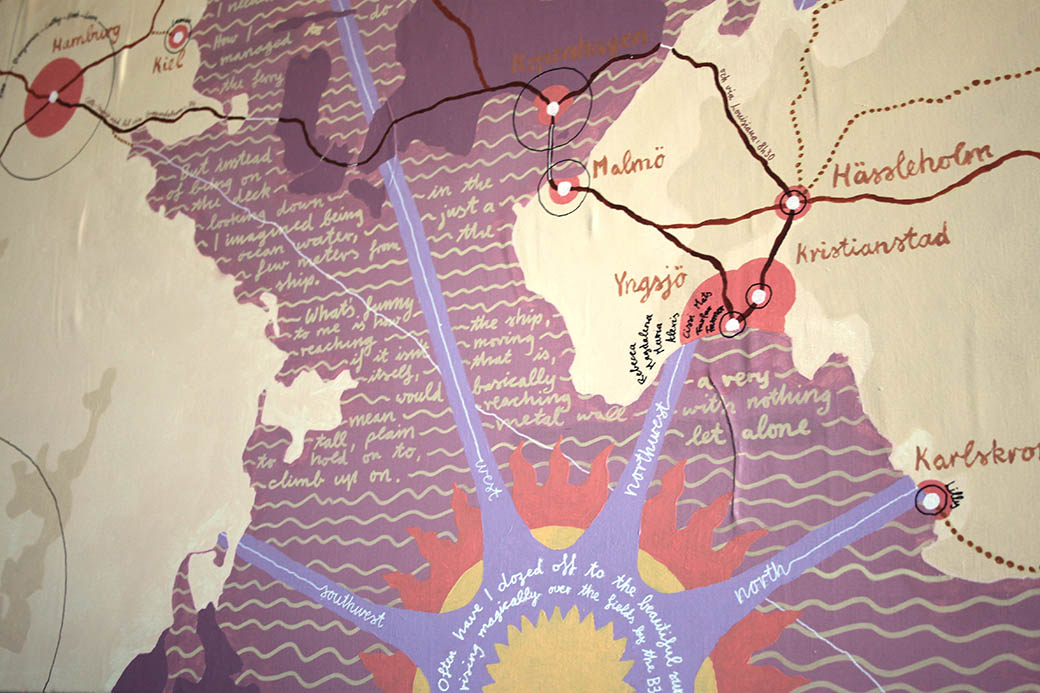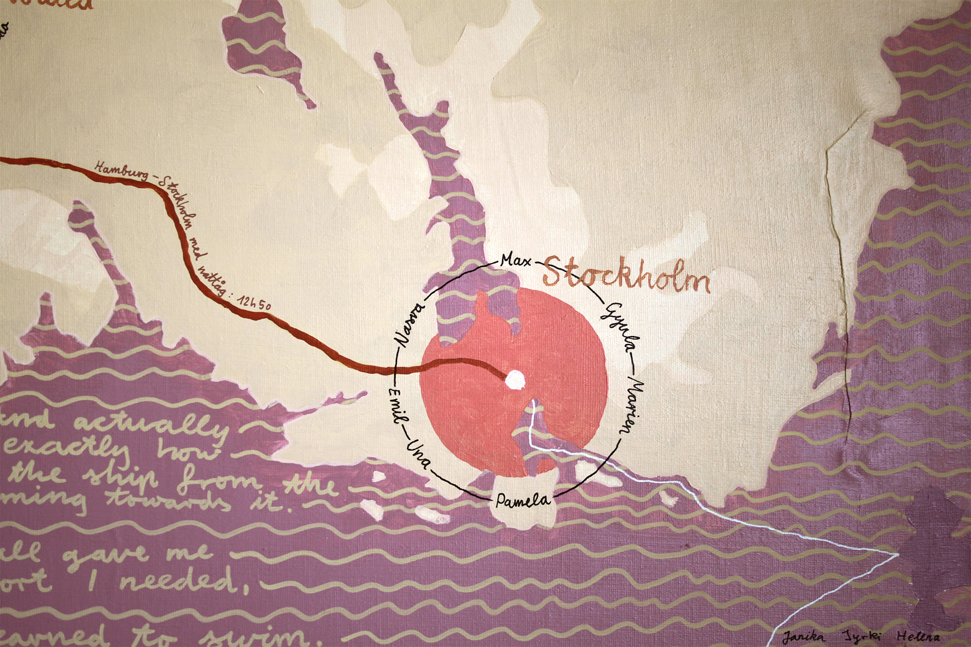 My love for the technique of mapping is such that I often think of ways to map my own life. For this project I painted a map of all places and routes that are close to my heart. For a long time I have wanted to test acrylic painting and finally gave it a shot this time. I realised that the places I wanted to include are spread out along a line from Northern Germany to Stockholm, so I decided to deviate from the rule of north pointing up.